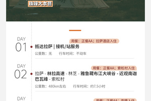 | 2-8人VIP小团 为保证成团及质量,根据人数派不同座位数用车,保证每人一正座; 包含司机一名、油费、:过路费、停车费,包含从出发地到景点及酒店费用,不包含晚间自由活动交通; 2-4人:乘坐5座SUV 5-6人:乘坐7座商务车 7-8人:乘坐9座商务车 |