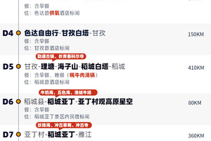 4、门票:毕棚沟观光车淡季60元/人、旺季70元/人(必须)+电瓶车20-30元/人(分段计费、可选),稻城亚丁观光车120元/人(必须)+稻城亚丁游览车70元/往返(可选),卓克基土司官寨门票60元/人(可选),色达预约48元/人,报名后请根据自己的游玩日期自行预约;