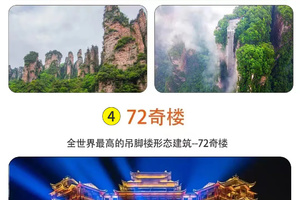 17:30景区门口集合返回市区,晚餐后打卡被誉为“张家界文化地标”和“夜经济新引擎”【张家界七十二奇楼景区】位于永定区武陵山大道1号,总建筑面积11万平方米,高达109.9米,分为天宫奇楼、烟火老街、七十二奇寨三大板块。于2019年成功申报吉尼斯世界纪录——全世界最高的吊脚楼形态建筑。主要景点包含:天宫奇楼、非遗老茶馆、大夫第、状元楼、篝火广场、凤尾瀑布、湘西集市街、回民小吃街、民国风情街、国潮旅拍街、迎宾广场。