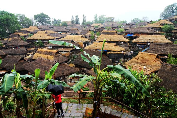 早餐后乘车前往即将消失的原始部落老村寨【翁丁村】(含电瓶车),到达翁丁村口时,恭候多时的“黑熊哥”和“黑珍珠”已经夹道相迎了,载歌载舞欢迎着远方的来客。一整个上午都是属于翁丁的自由探索时间,徜徉在原始的茅草屋间,感受曾经佤族人的生活。近百户佤族传统茅草屋就藏于这片深山中,保留了原始佤族民居建筑风格和原始佤族风土人情,不但是迄今为止保存完好的原始群居村落。