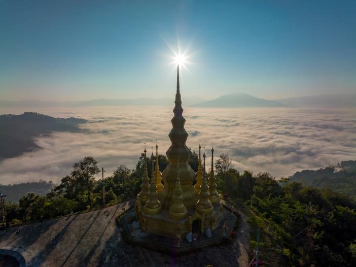 早晨天气好的话可以拍摄到【景迈山云海】壮观的云海盘踞在景迈山半山腰,拍摄完云海后适时离开景迈山,前往西双版纳勐海的隐秘小众景点—【景真八角亭】,寻找失落的佛国,景真八角亭是中国唯一保存完好的南传佛教戒堂,其价值远超建筑本身。汉式砖基+傣式木构+缅泰装饰,见证滇南与东南亚的文化网络;随后前往西双版纳【景洪】结束难忘的虫谷之旅。