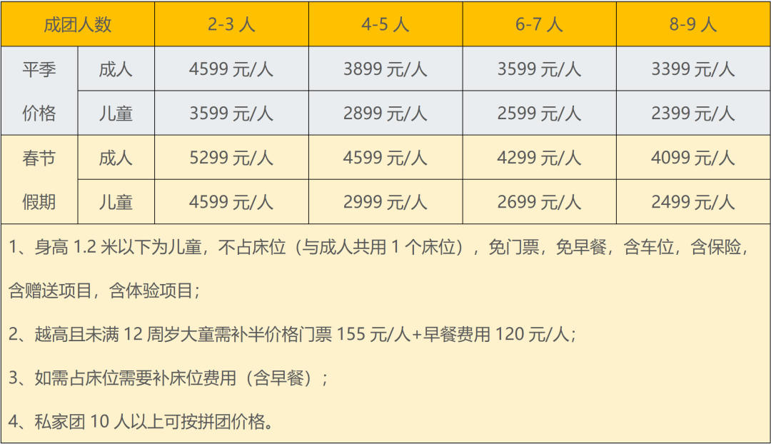 ▷房差:自然拼房2-3人标准间,如不愿拼房或拼不了房者须补单房差(平季800元/人,春节/泼水节1400元/人);