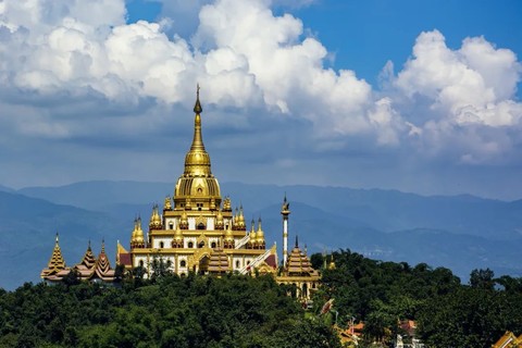 16:00 抵达【芒市】,前往【勐焕大金塔】及【勐焕银塔】,大金塔及银塔坐落在芒市东南部海拔一千零七十九米的雷崖让山顶,是芒市标志性的建筑,也是生活在这里的傣族人民的圣地,勐焕大金塔是亚洲第一空心佛塔,金塔的四周分别有大象、金鸡阿鸾、智慧鸟、十二生肖等16尊神像护卫,据传为佛主轮回时顺利转世的16种动物。在勐焕大金塔,能俯瞰芒市市区。