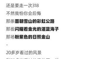(2)G318沿途用餐以川菜为主,但因为路况原因,很多时间不能正点用餐,请自备干粮。