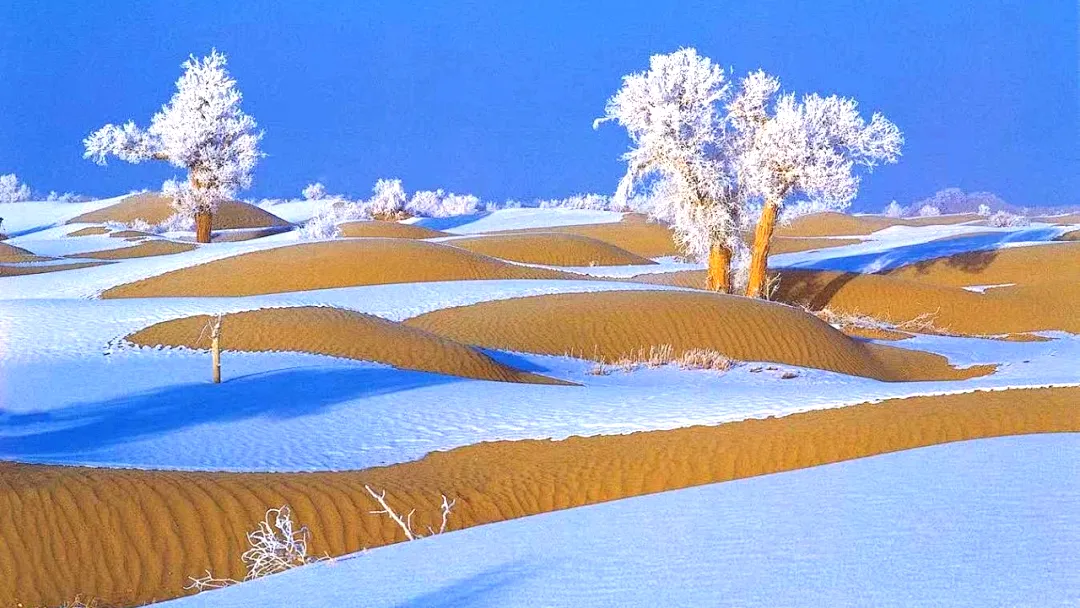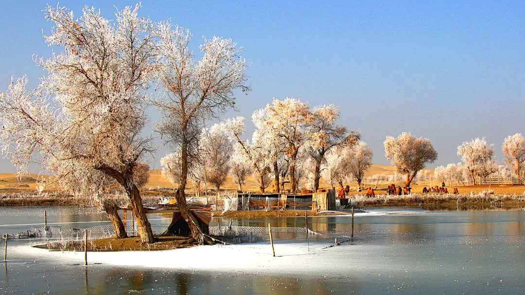 今日南疆8日之旅正式开启!早起乘车出发,沿着乌尉高速前往罗布人村寨景区,冬天的罗布人村寨是一场静谧而壮丽的自然景观,沿路看雾凇,看沙漠雪景。冬季的沙漠不再是夏日的炎热难耐,脚踩上去既不会深陷,也不再是松软的感觉,取而代之的是硬实的触感。罗布人村寨曾是丝绸之路上的重要驿站,漫步其中,仿佛能听到历史的回声。走进那些残垣断壁,想象着当年商旅络绎不绝的繁华景象。后前往酒店入住。