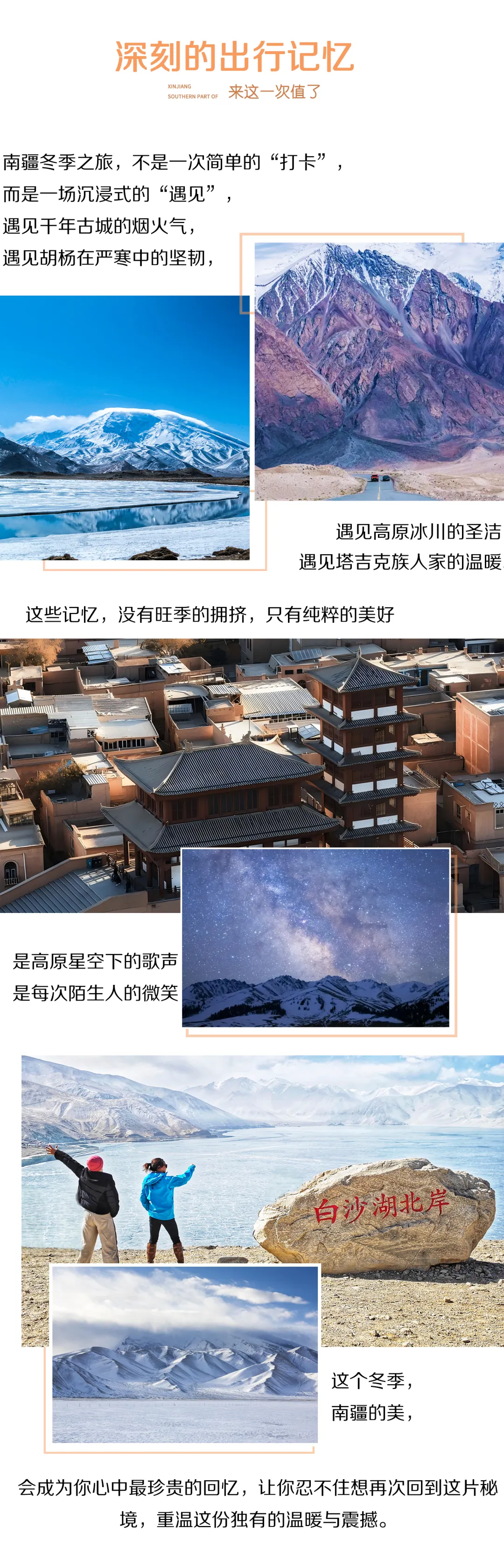 5.新疆冬季气温可达 - 20℃以下,需携带厚羽绒服、暖宝宝、防水手套、加绒帽子、雪地靴等防寒物品,避免冻伤。