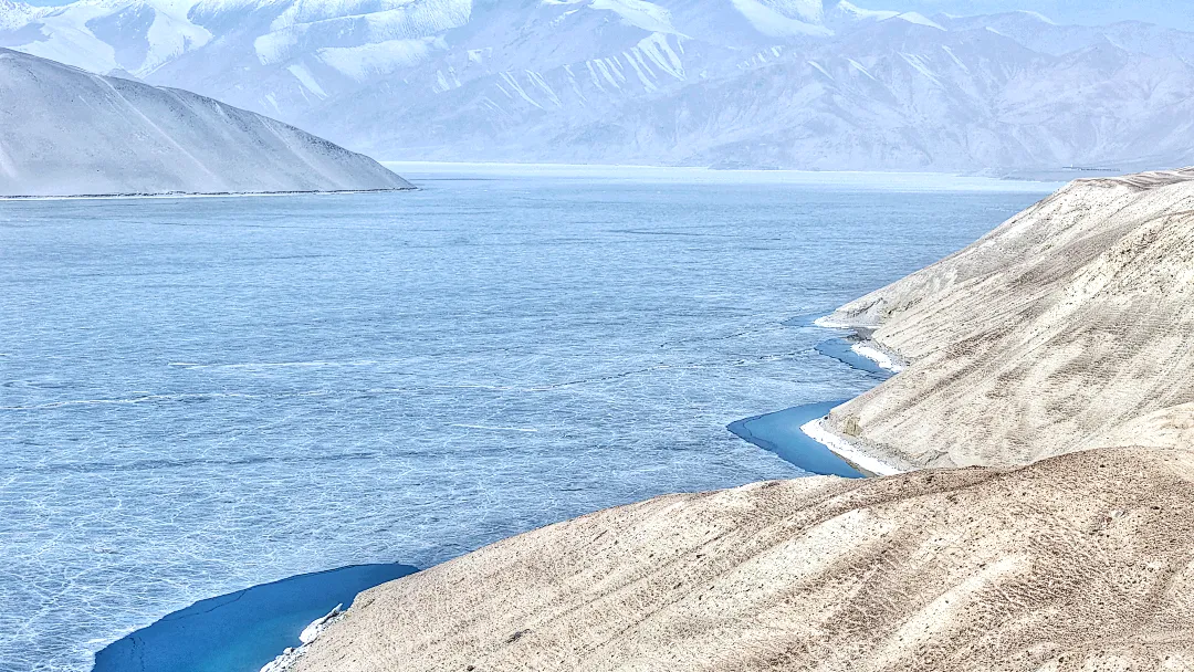 早起从喀什出发,沿中巴公路前往塔县。途中首先会途观奥依塔克红山,冬季的红山在白雪映衬下,红褐色山体更显雄浑,宛如一幅大气的油画,可在观景台短暂停留拍照。继续前行抵达白沙湖,冬季的湖面平静如镜,碧蓝湖水倒映着白雪覆盖的白沙山与远处雪山,天地间只剩蓝与白的纯净,可沿湖边漫步,感受高原的静谧辽阔。傍晚抵达塔县后,前往塔吉克族人家进行家访。主人会端上特色糕点和茶,热情招待远方来客。你可以换上塔吉克族传统服饰,跟着主人学习简单的塔吉克舞蹈,在欢声笑语中感受高原民族的淳朴情谊。家访结束后,前往酒店办理入住。