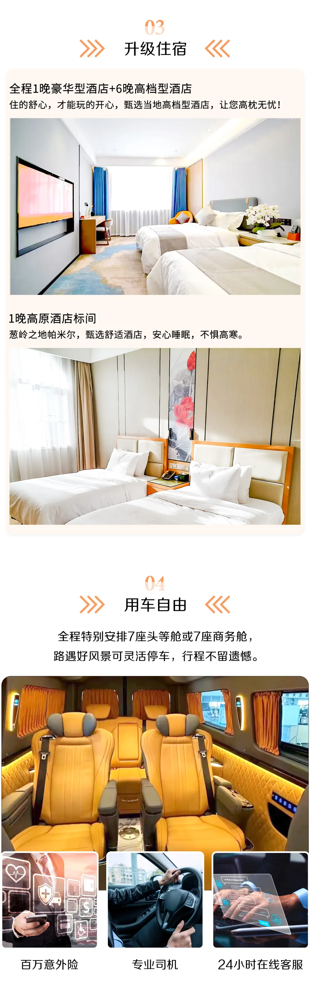 备注:高端定制,费用另议(含住宿升级、用车升级、航拍跟拍等服务升级)