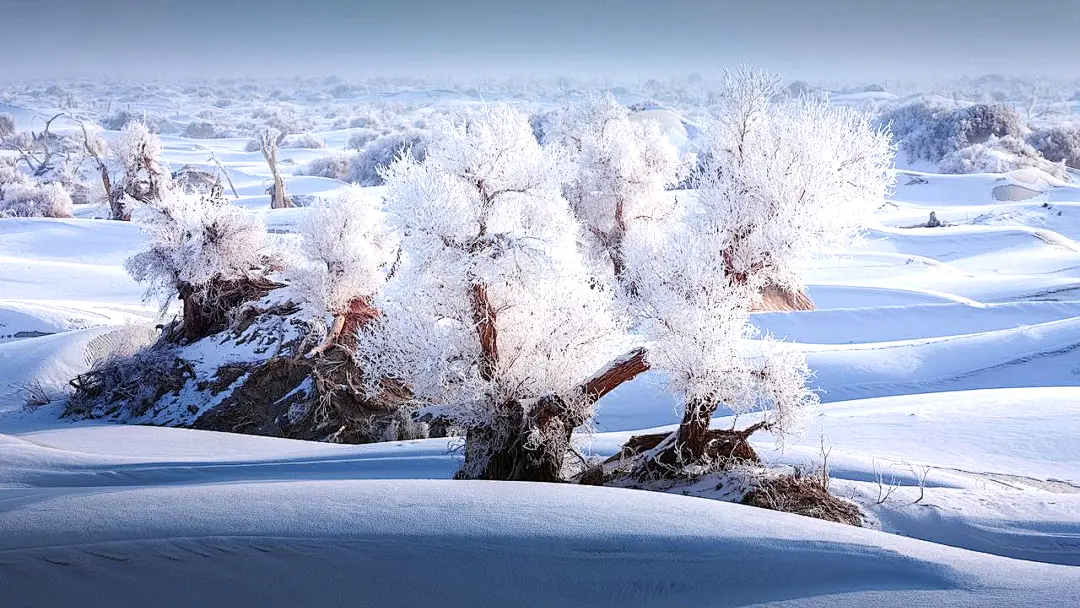 早餐后前往轮台胡杨林景区。冬季走进胡杨林,扑面而来是一种原始苍凉的气息,置身其间有一种天辽地阔时间凝滞的感觉;徜徉其中心灵会受到庄严与神圣的洗礼,会觉悟生命的壮丽与永恒。银装素裹的胡杨林里不仅有胡杨千年不倒不死的精神,还有顶风冒雪依然坚毅如昔的品格。游览完毕前往库车花门巴扎,这里是烟火与文化的交融之地。库车老街是历史沉淀的活化石。漫步古街,脚下是古朴的石板路,身旁是雕梁画栋的维吾尔族传统建筑,门窗雕花精致繁复,处处诉说着往昔的故事,仿佛穿越回了丝绸之路的繁华盛景。
