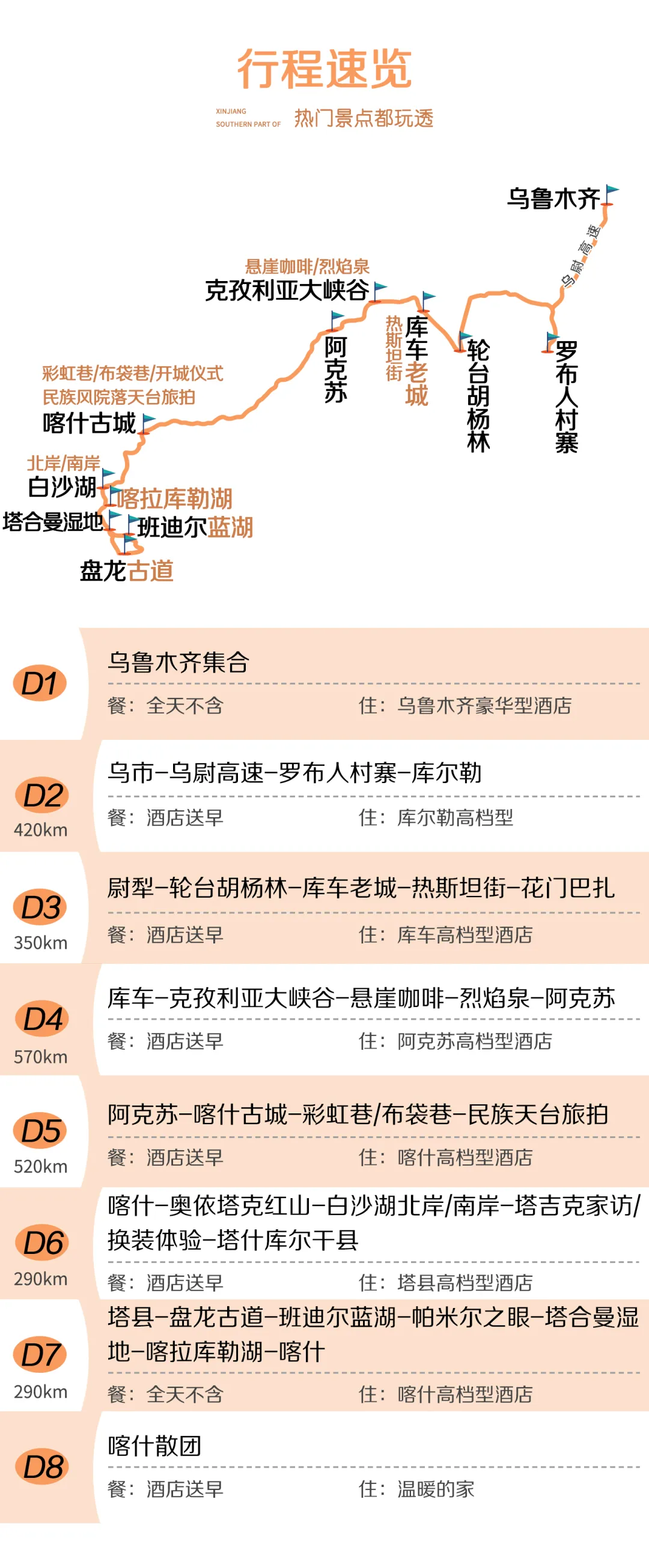 ☆集合时间地点:集合日全天乌鲁木齐指定酒店集合,具体住宿酒店出发前通知,请保持手机畅通。喀什解散。