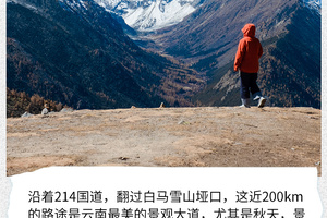 10:00 抵达【白马雪山垭口】,一个99%去梅里雪山的人都听说过的地方,看着U形的山谷和雪山,拍照绝美,等到秋天到来,夏天山上杜鹃花丛生,秋天山上一片金黄,一定是你来梅里雪山最值得的地方。