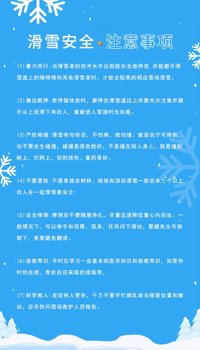 2)严禁酒后、心脏病、高血压及孕妇滑雪。