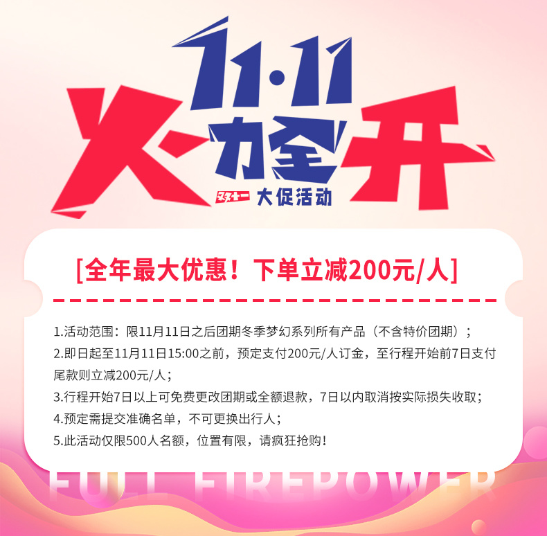 优惠团期:11月1日-2月28日(不含春节团期)