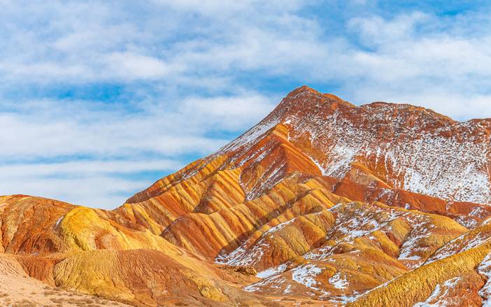 09 : 00抵达“中国最美的七大丹霞地貌”之一【张掖七彩丹霞】。就像上帝不小心打翻了颜料盒,涂抹的山间色彩斑斓,宛如七彩缎带;光线打到丹霞岩壁上,美不胜收