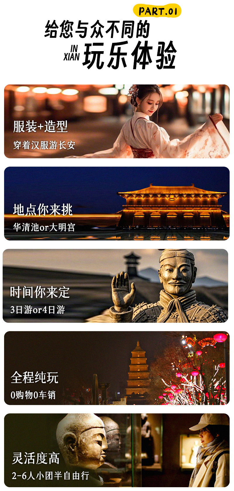 黄金周:如需选择D4:城墙-永兴坊-西博-大唐不夜城(妆造、穿汉服游长安)行程安排: