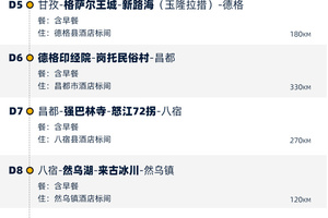 (4)夜路:原则上坚决不走夜路,但因为路况和天气情况复杂,西藏段内全段限行,偶尔会出现走夜路的情况。如果队员拒绝走夜路,要临时住宿,所产生当天已经定好的住宿费用不退,新产生的住宿费用队员自己承担。如果需要延长行程,所延长行程的相关费用也由队员承担。