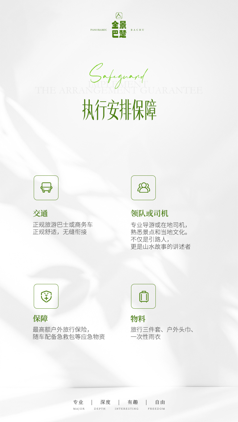 4、领队:全程优秀专业领队;2-8人安排司兼导,司机进神农架神农顶景区,其他景区不进;