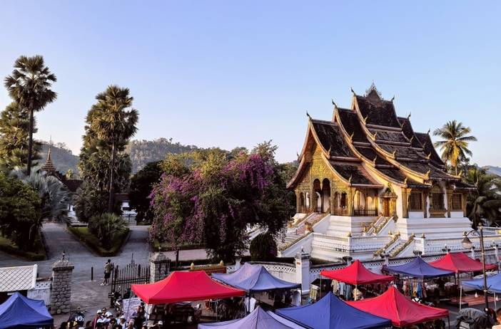 入住后前往湄公河码头,【乘船畅游湄公河】欣赏岸风光,听听音乐,感受老挝的慢生活。我们乘坐特色游船,穿梭于湄公河上,欣赏两岸的琅勃拉邦独特建筑,享受旅行的闲霞时光。晚餐建议在游船上吃,可以欣赏醉美日落和湄公河两岸的迷人夜景,还能欣赏老挝姑娘欢歌载舞哟。体验完湄公河游船后前往琅勃拉邦古城,漫步【法国街夜市】,每当夜幕降临,华灯初上,原本白天清闲的街道,转眼间变得热闹非凡,各种夜市赶摆不仅热闹非凡,琳琅满目,且物美价廉,人间烟火最抚凡人心。