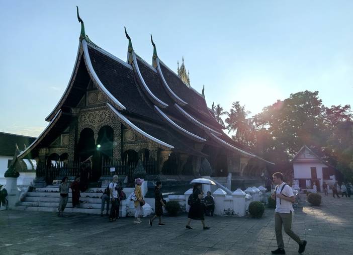 下午适时返回琅勃拉邦,带领大家体验一次古城City Walk,徒步登临【普西山】顶峰,山顶的日落被誉为“亚洲坝达日落之一”,站在山顶俯瞰琅勃拉邦城全景,欣赏普西山日落,霞光透出,照到宗西塔上,整个塔身熠熠生辉,姿态万千;下山后在古城内寻找异国他乡夜市的各种小吃美食,或地道的老挝小火锅,或法式餐馆,或结伴找上一家心仪的酒吧,与外国友人畅饮,谈笑风声,或可找个按摩店,这里的按摩店非常实惠哟,好好享受一下异国风情的夜晚吧。