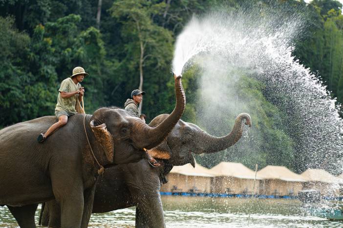 参观香通寺后前往琅勃拉邦【大象基地】,这是老挝佛国守护神,也是大象的聚居地。来到这里怎么能不体验一次骑大象呢?在这里流传说一句话叫住:“在森林里陪大象散步才是正经事”!今天我们将与大象零感接触,骑上大象漫步穿越于丛林之中,与大自然完美的融合在一起。
