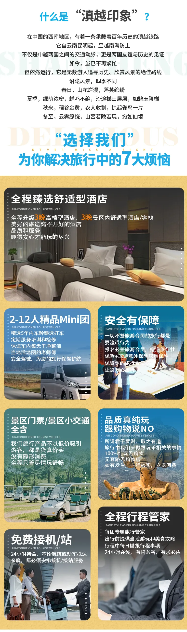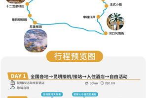 ▷集合地点:昆明市指定酒店(报滇越印象+名字入住);