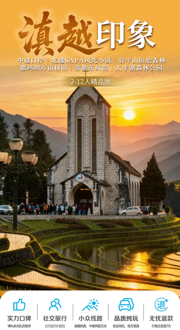 【滇越印象】中越口岸|北越Sapa风光小镇|哀牢山原始森林|撒玛坝万亩梯田|弥勒东风韵|太平湖森林公园|7天异国风情之旅 [复制链接]