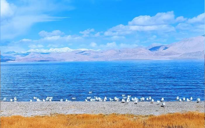 【行程概述】早餐后沿着新藏线返回新疆,告别狮泉河行车2个小时左右会遇见今天的第一个湖泊——班公措,藏语意为“长脖子天鹅”。班公措比较神奇的地方在于它的东侧是淡水湖,西侧是咸水湖。西部寂静荒凉,东部生机盎然,幸运的是淡水湖这侧便位于西藏西部,我们才有机会在新藏线上见到湖内百鸟齐飞的壮观景象。欣赏完班公措的湖光山色后便要继续出发了,翻过新藏线上著名的界山达坂 (海拔5248米)后便进入了新疆地界,晚上入住赛图拉镇的政府驻地——三十里营房。相较于新藏线上的其它乡镇,三十里营房还算繁华,并且具有十分重要的战略意义。