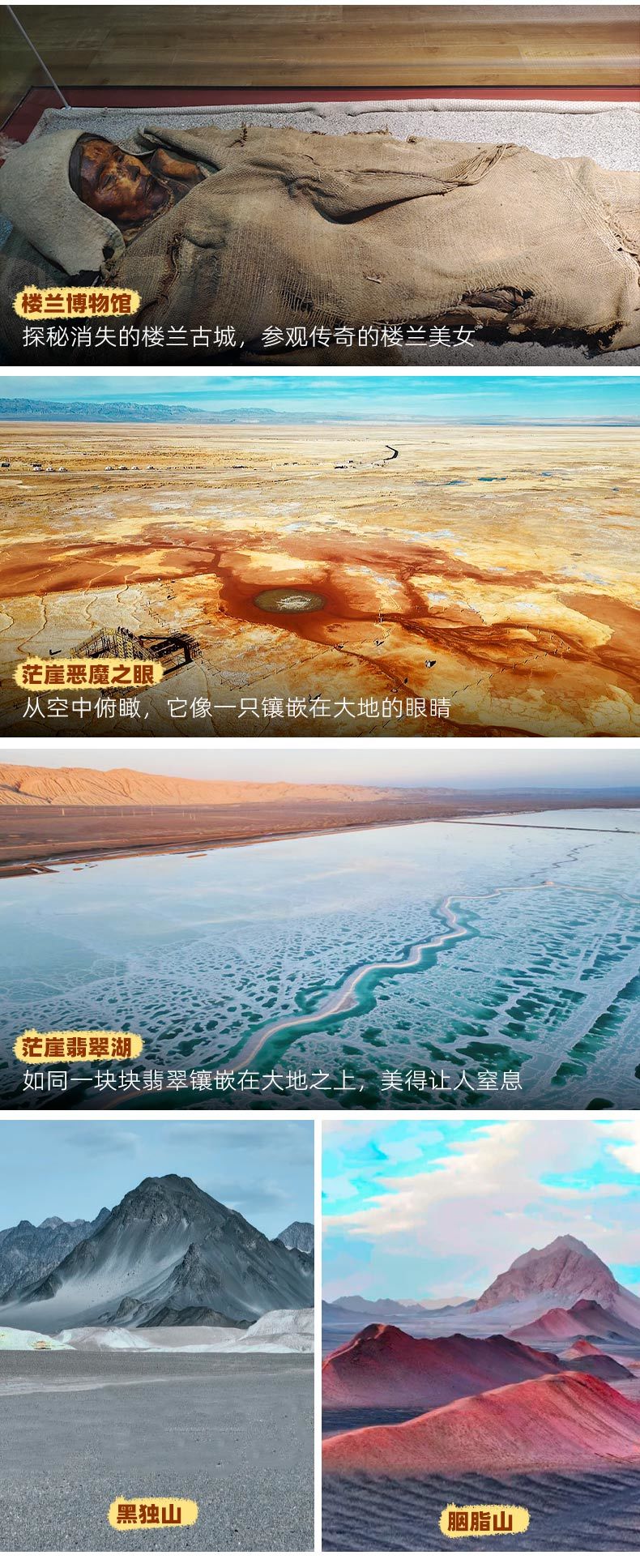 (此行程后续可增加穿越克里雅古道全程+精绝古城+楼兰博物馆+茫崖恶魔之眼行程)