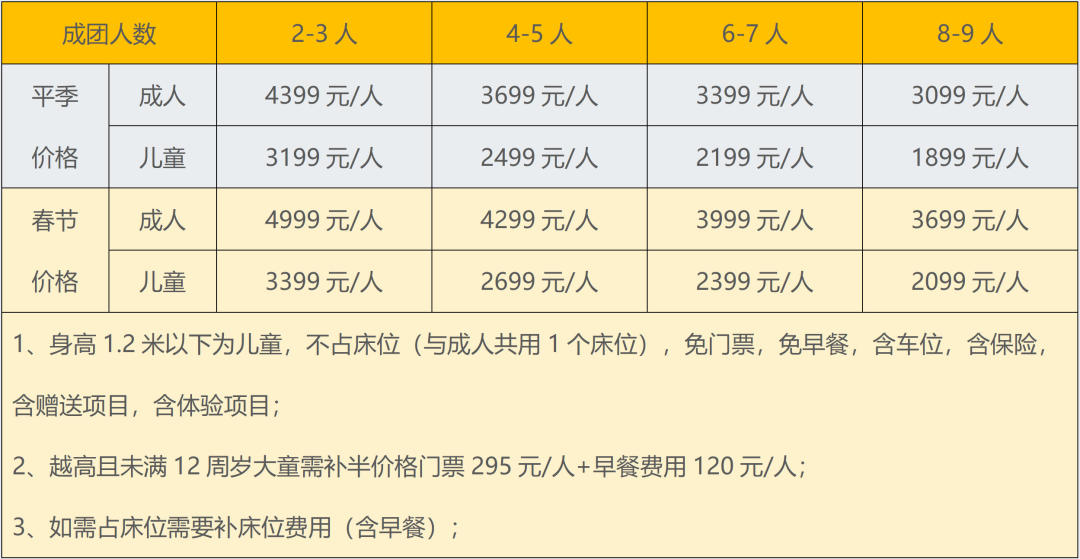 成人:3599元/人,儿童:1999元/人