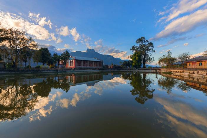 随后体验怒江【飞渡溜索】,它是怒江境内极具代表性且典型的原始交通工具,至今仍然普遍使用中。随后前往【“废城”知子罗】,一个被人遗忘的小城,当你踏进这座云端之城,映入眼帘的是一座座上世纪民国年间的建筑,仿佛穿越了时空隧道;这里曾经是繁荣的怒江首府。上世纪八十年代预测会有重大自然地质灾害,所以整城迁徙至泸水,一夜之间便成了废城。傍晚入住老姆登当地特色民宿客栈,欣赏【老姆登】基督教堂,皇冠山日落晚霞。