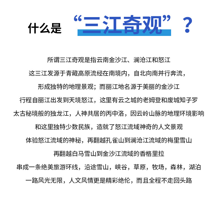 ▷集合地点:丽江/大理指定酒店(报三江奇观+名字入住);