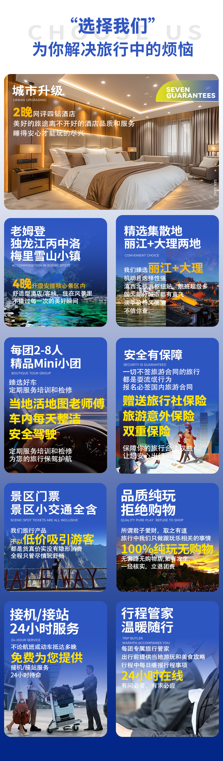 ▷交通:不包含各地到达丽江集散的往返大交通费用(如:机票和高铁火车票等,提前预定通常折扣都会很低);