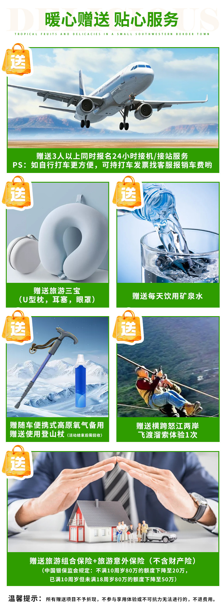 6、赠送云南旅游组合保险&旅游意外保险(不含财产);