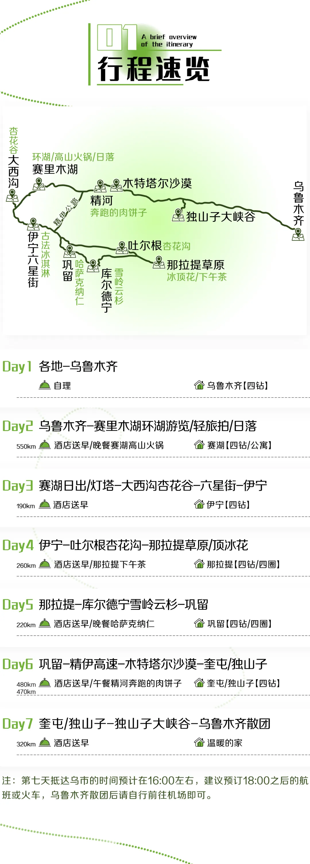 2. 抵达乌市的时间预计在16:00左右,计划今天返程的队友,建议预订18:00之后的航班或火车,以免耽误返程;
