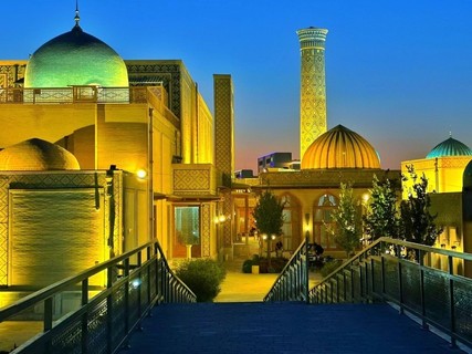 【行程概述】早餐后安排塔什干城市半日游,主要游览帖木尔广场、米诺尔清真寺、国家历史博物馆、独立广场后前往世界上最大的手抓饭中心品尝美味的塔什干手抓饭,然后开车前往丝路明珠、中亚历史文化名城-撒马尔罕,在撒马尔罕城市外围,为了2022年一带一路国际会议的召开,新建了一个颇具中国色彩的丝绸之路文化产业园,里面建有中国特色的酒店,我们将在撒马尔罕的酒店连住两晚,大家可以洗洗衣服,好好调整一下。