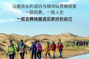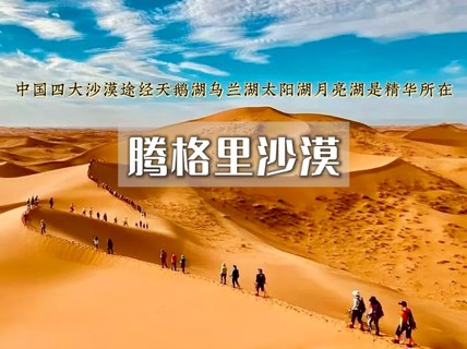 ▪ 大漠风光腾格里沙漠为中国式大沙漠之一,徒步过程中可见一望无边的大漠风光,沙漠湖泊或如中国地图或如月牙一般,甚是神奇。徒步过程中经过湖泊、小型水潭均可见美丽的马兰花、梭梭树、沙枣树等植被。