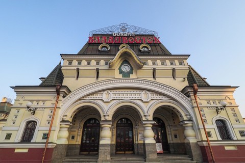 14:30参观【陆港火车站】即和海运码头直接相连的火车站,也是西伯利亚大铁路的东方终点,迄今已有一百余年。站内的9288纪念碑就是为了纪念这“世界第十二大奇迹”而建。站台中央陈列着一台由俄罗斯人设计,纪念二战时期铁路工人的蒸汽火车头,成为这座城市的标志性建筑。