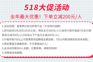 正价团期:4月29日-6月28日、9月29日-10月31日