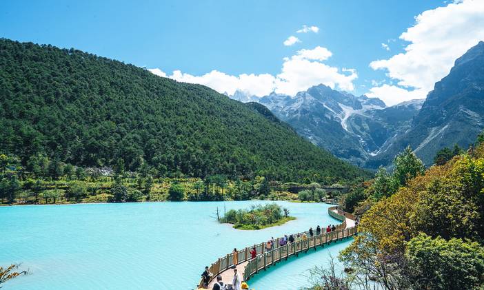 早餐后前往丽江国家5A【玉龙雪山】,约1小时抵达丽江玉龙雪山风景区。进入高原牧场甘海子,游览甘海子后我们在景区内用午餐。中餐后乘索道到达【云杉坪】。又名殉情谷,本地人称之为玉龙雪山第三国度。海拔约3240米,一块隐藏在原始云杉林中的巨大草坪,在此观赏玉龙雪山是最佳位置。随后游览【蓝月谷】景区的玉液湖、镜潭湖、蓝月湖、听涛湖、白水河。