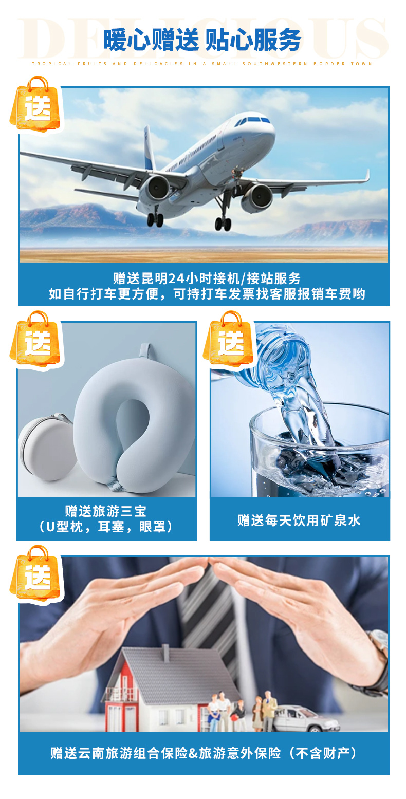 1、赠送昆明24小时接机/接站服务,PS:如自行打车更方便,可持打车发票找客服报销车费哟;