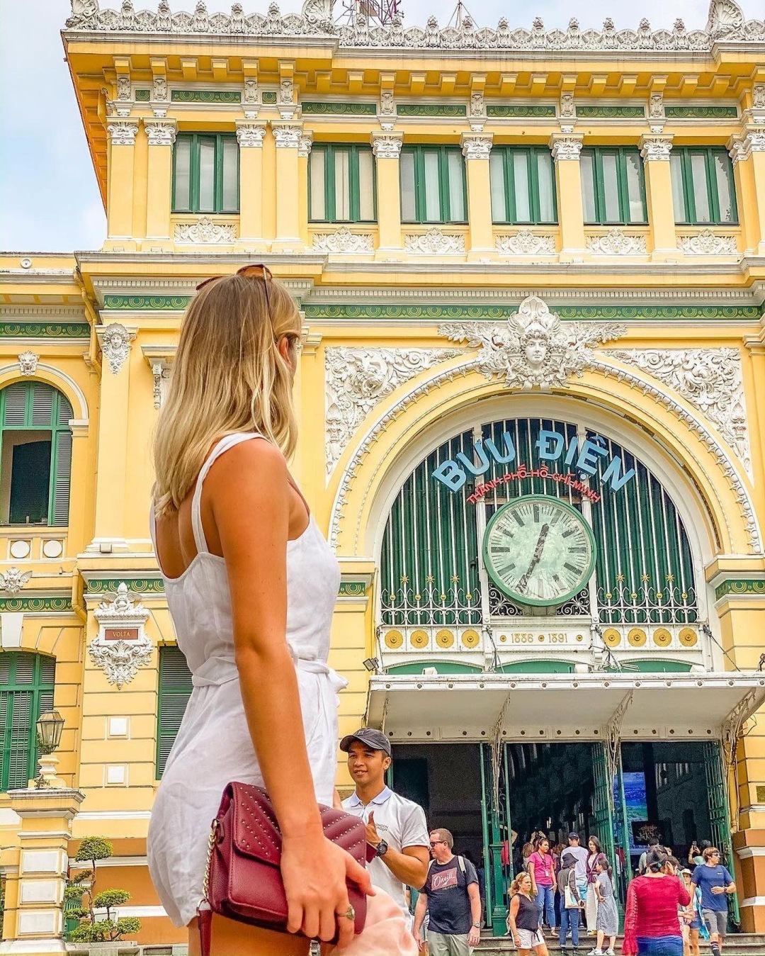 【邮政局】是胡志明市荷兰殖民者阶段的第一座邮政局,始建19世纪初,是胡志明市的一个知名城市地标,每日都是有很多人来此参观考察,而邮递一张名信片归国基本上是每一位游客来此都是会做的事儿。