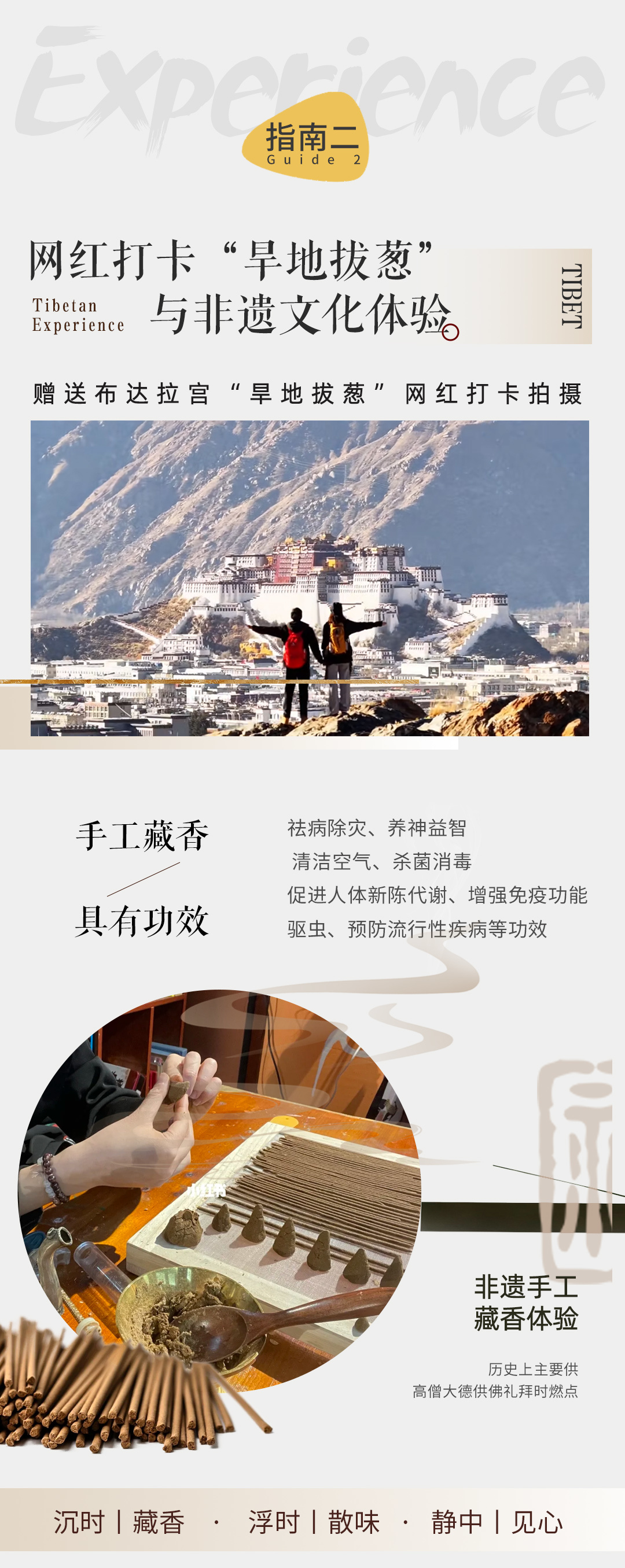 1.赠送非物质文化遗产手工藏香制作&布达拉宫“旱地拔葱"拍摄;