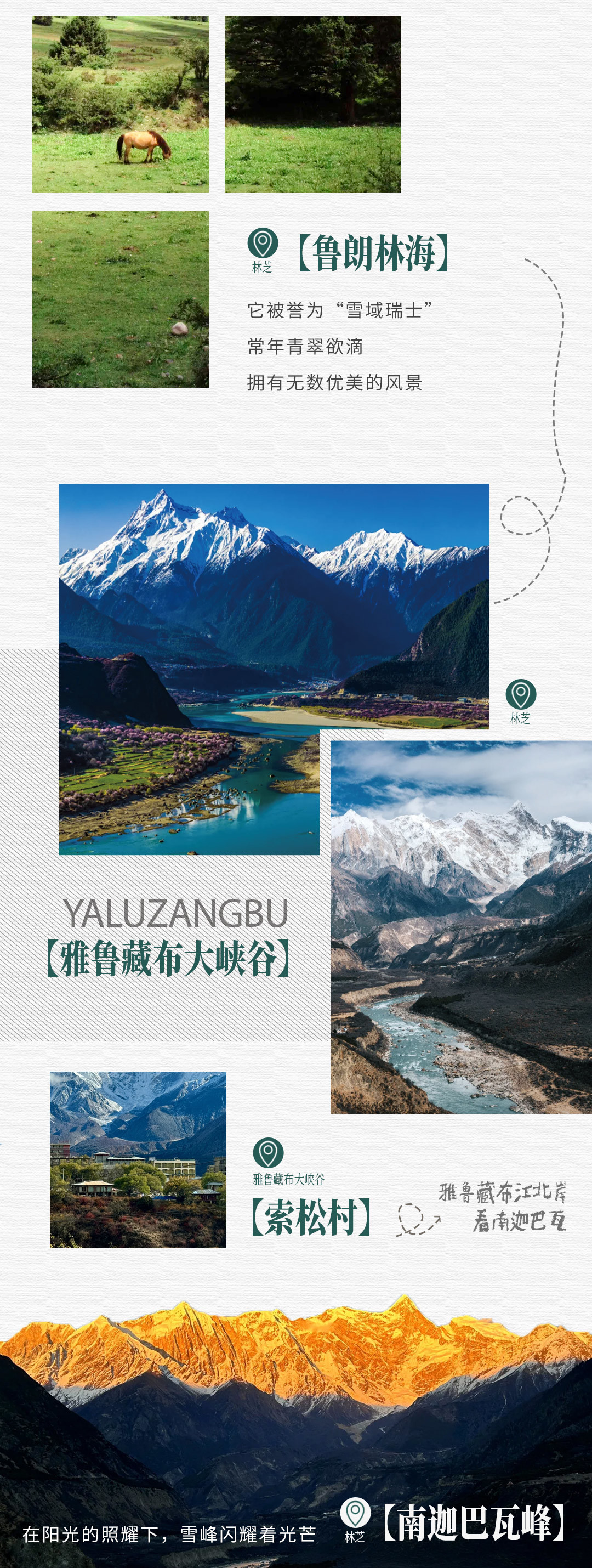 去沿着拉萨河继续前行,经由新修好的拉林公路一路驰骋,拉林公路被称为中国最美的公路之一!从“日光之城”拉萨到“雪域江南”林芝。每一公里都是如画风景。下午到达鲁朗小镇,这里由灌木丛和茂密的云杉、松树组成,是鲁朗最美的景致。林海绿得丰富,正所谓“幼林葱翠母林幽”,尤其是高耸入云的南迦巴瓦峰的皑皑白雪与林海相互映照,越发显得西藏高原的雄奇壮丽。