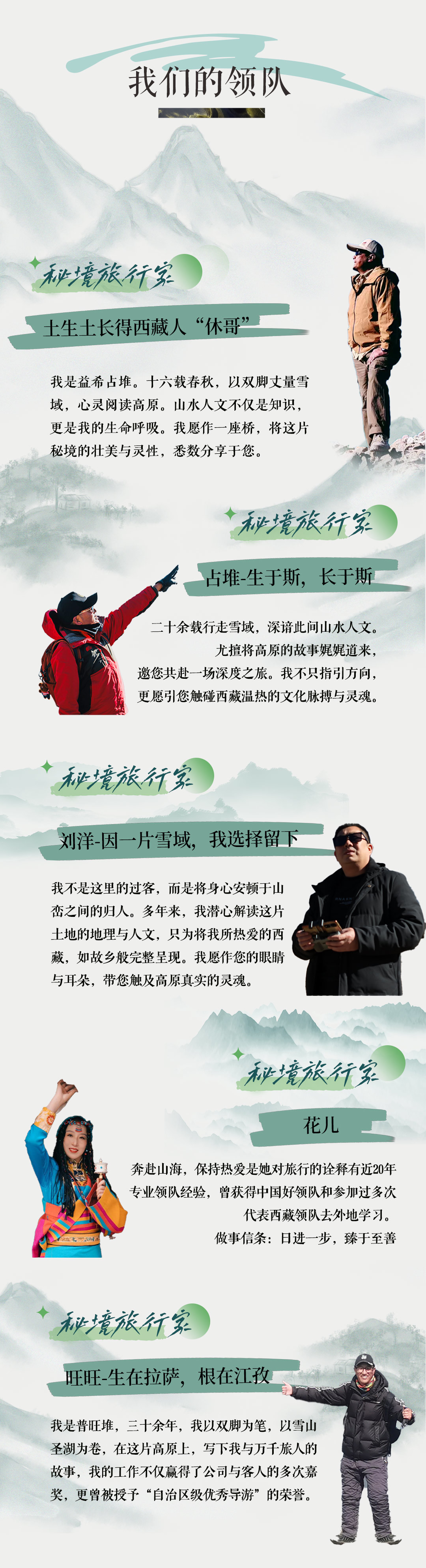 7人以下安排市区专业导游领队,8人及8人以上全程配备一名专业领队全程陪同,为大家讲解藏传佛教的文化、行程向导,并保证一团一证。(持证不代表他们像传统导游一样无趣,是为了保障团队的资质和安全。他们靠谱专业,文艺2B,负责行程安排和组织分享与交流的平台,只为了让你的旅行满满真实和快乐的回忆)。