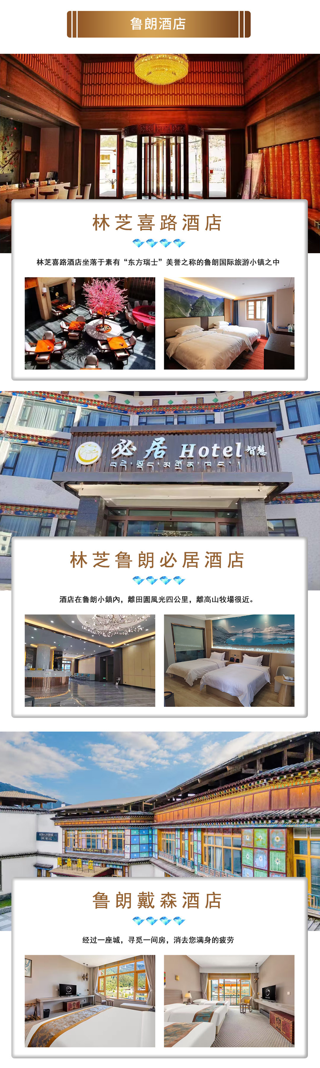 鲁朗住宿为鲁朗喜路四钻酒店或同级 住1晚