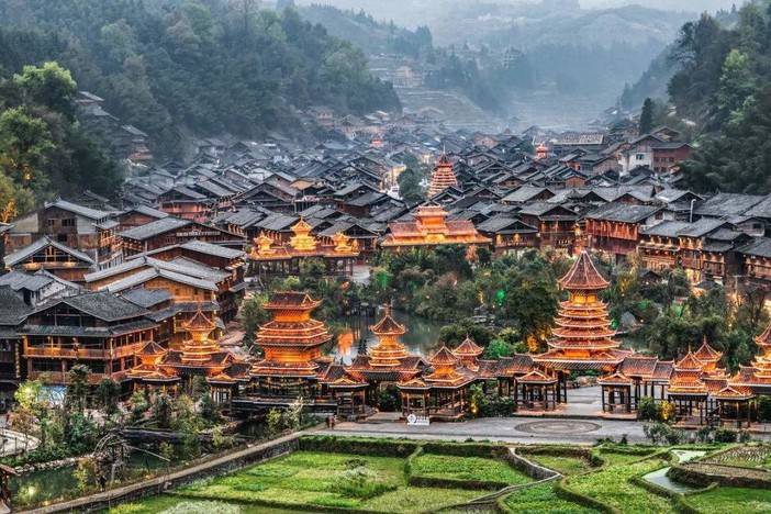 早餐后出发前往肇兴侗寨(约2小时车程),肇兴侗寨是“中国最美的六大乡村古镇”之一,以“鼓楼文化”闻名天下,被誉为“鼓楼之乡”。抵达寨子,跟着侗族向导探秘五座鼓楼,听“先有鼓楼后有寨”的传说,了解鼓楼作为议事、祭祀、庆典场所的文化内涵;