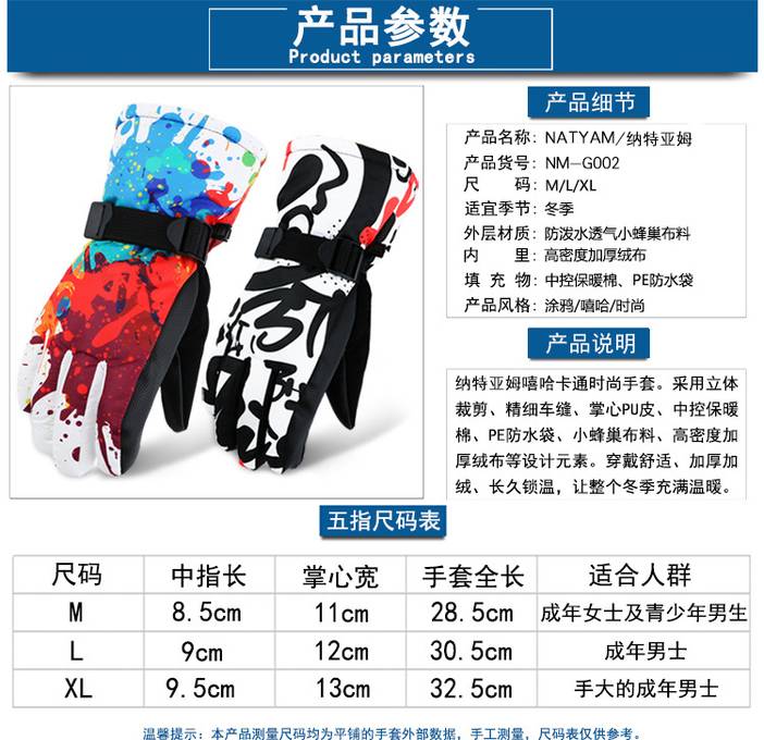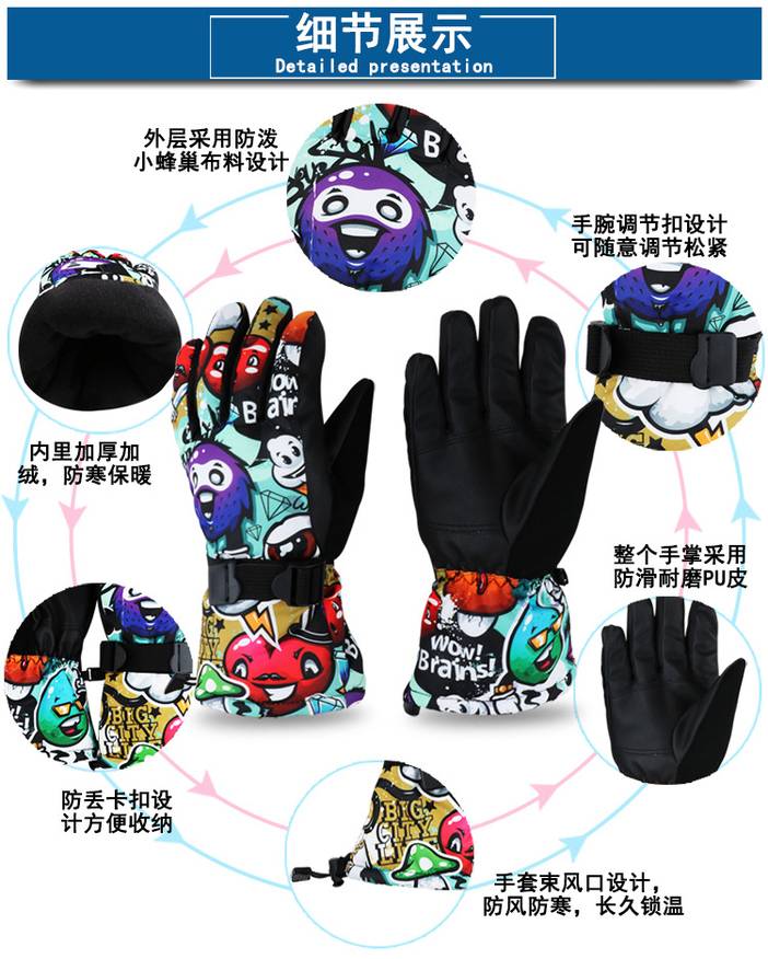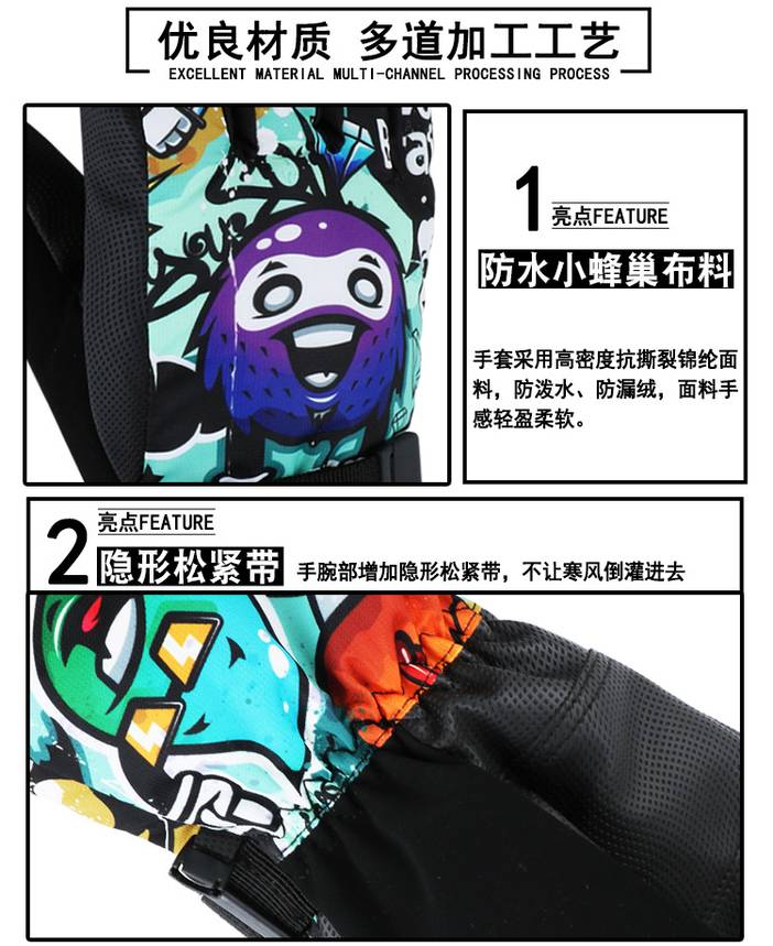 冬季保暖手套 男士防风寒防水 加厚骑行手套 骑车手套 运动滑雪手套